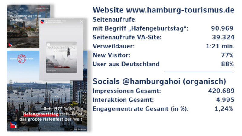 Für den kommenden Hafengeburtstag sind die Vertriebskampagnen bereits im Oktober 2022 online in diversen Kanälen der HHT angelaufen. Aufgrund der großen Nachfrage durch den sehr erfolgreichen Auftaktnewsletter musste bereits das dritte Reisepaket mit weiteren Kontingenten akquiriert werden. Tendenz steigend.